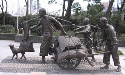 (这雕塑最早在红楼“城展”征求意见稿时,是钢丝车。我提出,清时应该是独轮车) 1949年11月8日,由浙江省盐务局军代表张元勤批发的76号文件,再次强调晒盐的重要。这时,清泰门外的产盐已转向了九堡以外,但“清泰门外盐担儿”一说仍有。杭州盐务分局局长罗义文在1949年的工作总结中说:杭城尚有盐担儿“二百余名”。罗义文还说:“我们接管以后,由于资金和食粮的匮乏,因此实行(食盐)自由运销,就场征税的政策”。 当时,因为大盐商的囤积抬价,杭城一度出现盐荒。盐务分局动员了“二百余名食盐零售肩贩(盐担儿),争取这些人来供应杭城市民的食盐。”盐担儿对新政权的巩固,也有过功劳。他们的最后消失,是在1949年10月以后。杭州盐务分局第173号文规定:在杭市及杭县地区开设的正式盐店、酱园店或兼营盐业,“均应向本局申请登记……结保……经查核认可,发给登记证盐摺,方得营业。”从那时开始,盐店和酱园店逐步取代了满街行走的盐担儿。 当然,也遭到了盐担儿的抵制。十年前,居住在德胜东村的84岁老人何立人告诉笔者,作为旧政权的留用人员,1949年后他仍在杭州盐务局工作。他说,后来实行食盐官营,盐担儿普遍不满。他们说:你们条儿码子(指公家人或警察。出自洋泾浜语:“moulds”)为啥不去管管大老板?管我们穷人!何立人说:我们也是睁一只眼闭一只眼。 (这照片摄于新清泰门直街建成以后,城墙被开了一个完整的口子。) 三、 清泰城门,是元末以后的城门。南宋时,东城墙在如今的东河以西。相应的城门,在如今的城头巷口,称“崇新门”。城头巷的“城头”,指的就是城楼。 南宋以前,进了“崇新门”就是“荐(箭)桥大街”,商市繁华,也是娱乐会所“中瓦”所在。灶商,盐商,多居住在此。《三刻拍案惊奇》第二十六卷说的就是盐商养妾蓄婢的淫事。后来的文人话本(小说),一旦写到荣华富贵,淫逸荒诞,往往假托“荐(箭)桥大街”说事。譬如《醒世恒言》第三十三卷《十五贯戏言成巧祸》;《警世通言》第二十八卷《白娘子永镇雷峰塔》。
